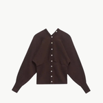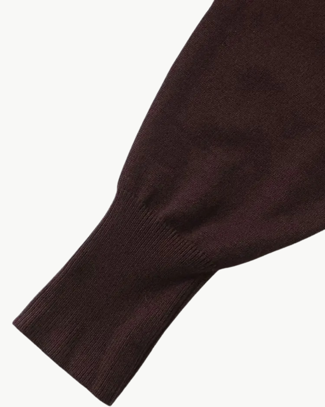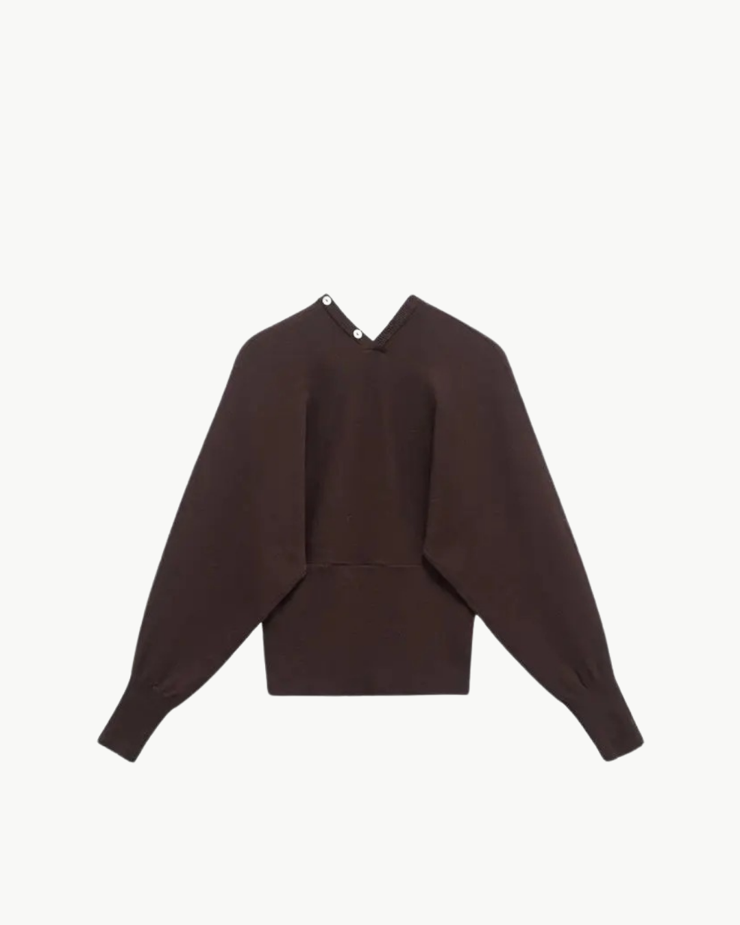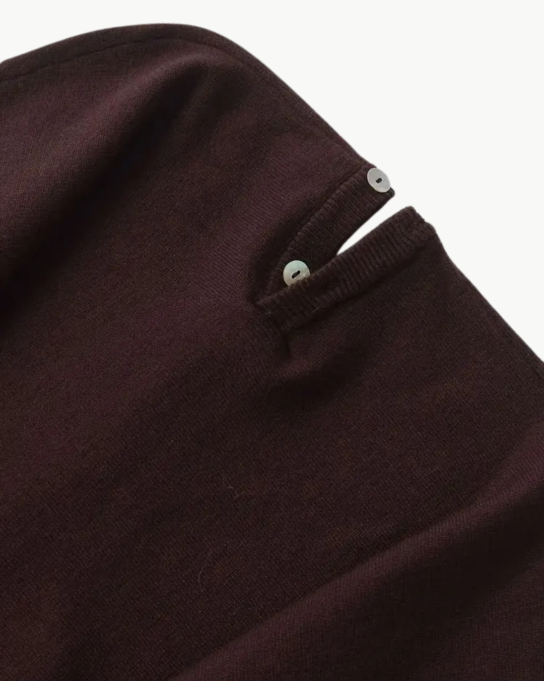 Le Cardigan Cintré à Col V incarne une élégance subtile et précise. Sa coupe ajustée souligne la taille, tandis que les dix boutons nacrés s’alignent avec finesse sur le col en V, apportant équilibre et distinction. En brun profond, il révèle une texture souple et raffinée, typique de la vision Civolé : une sophistication calme, pensée pour le quotidien comme pour la soirée.