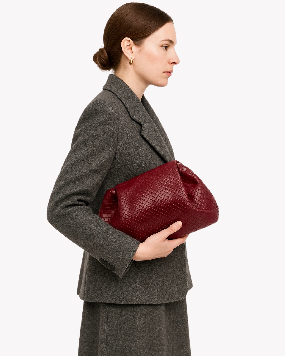 La Pochette Tressée bordeaux associe un volume sculptural avec une texture raffinée. Son tressage délicat témoigne d’un savoir-faire intemporel, tandis que sa forme souple s’adapte aussi bien aux instants du quotidien qu’aux occasions plus habillées. Portée à la main ou glissée discrètement sous le bras, elle incarne une élégance subtile et moderne. Plus qu’un accessoire, une déclaration de style.